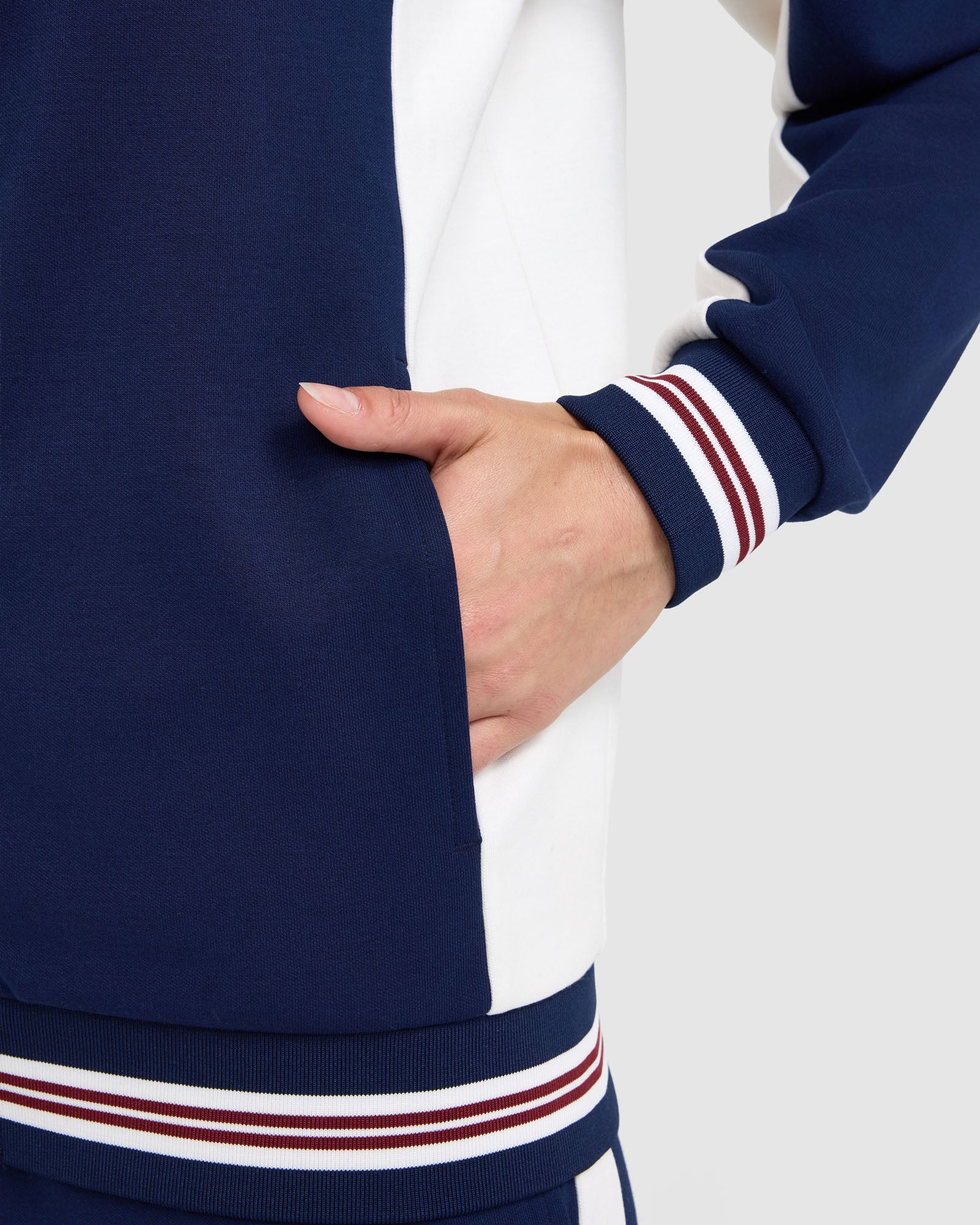 • Ribbed trims with stripe detail